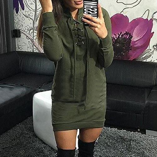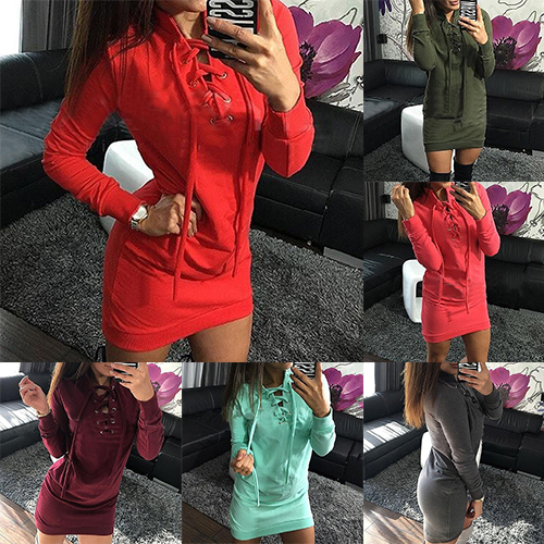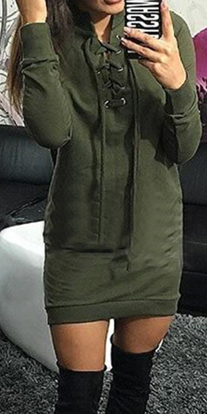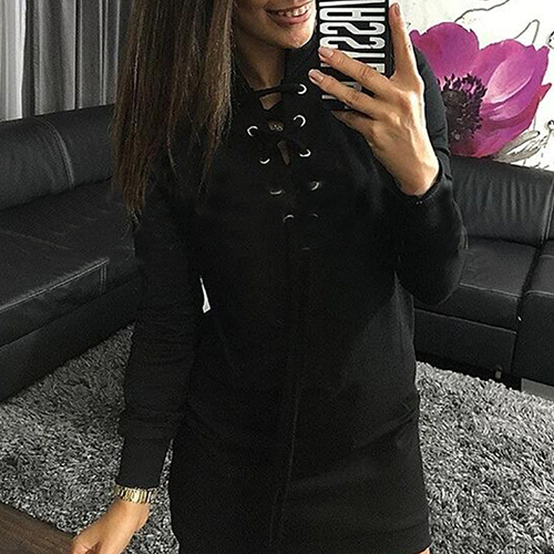 This dress would be your best helper. Styled with solid color, long sleeve and front lace-up