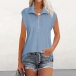 Casual Solid Color Half-zip Stand Collar Sleeveless Shirt