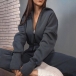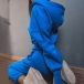 This jumpsuit offers a perfect blend of comfort and fashion-forward style. The solid color adds versatility, while the half-zipper and hooded design add a modern and sporty touch.