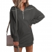 Casual Solid Color Half-zipper Lapel Long Sleeve Sweatshirt Dress