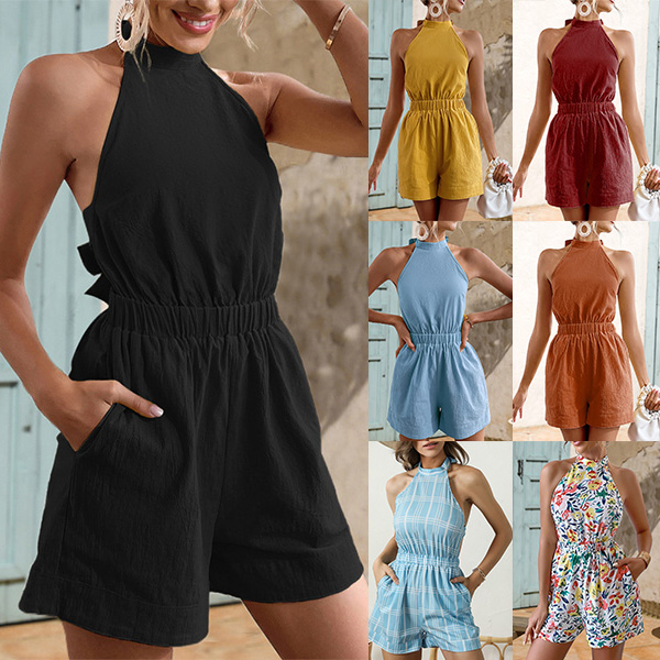 Simple yet chic, this halter neck romper epitomizes a laid-back style. Transition effortlessly from beach days to summer nights—just accessorize and go! Add to your favorites now before this breezy, carefree piece sells out.
