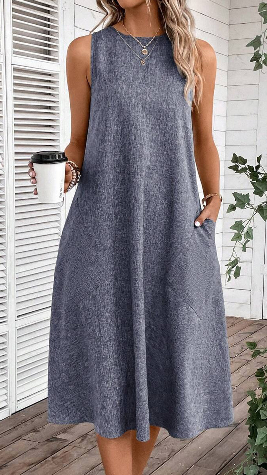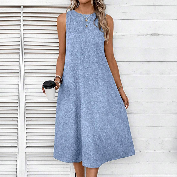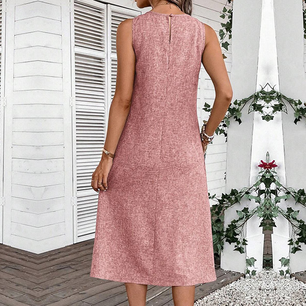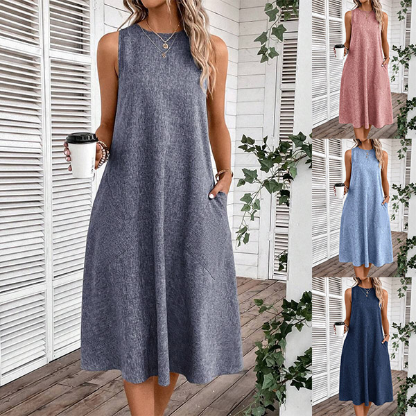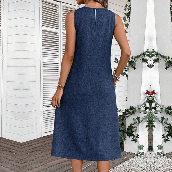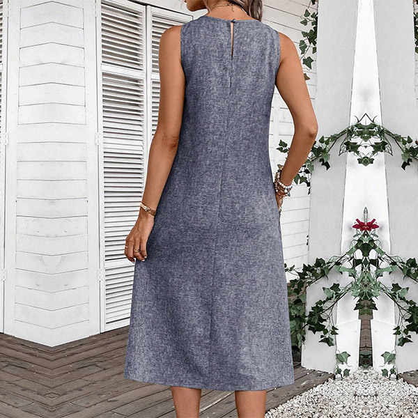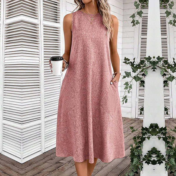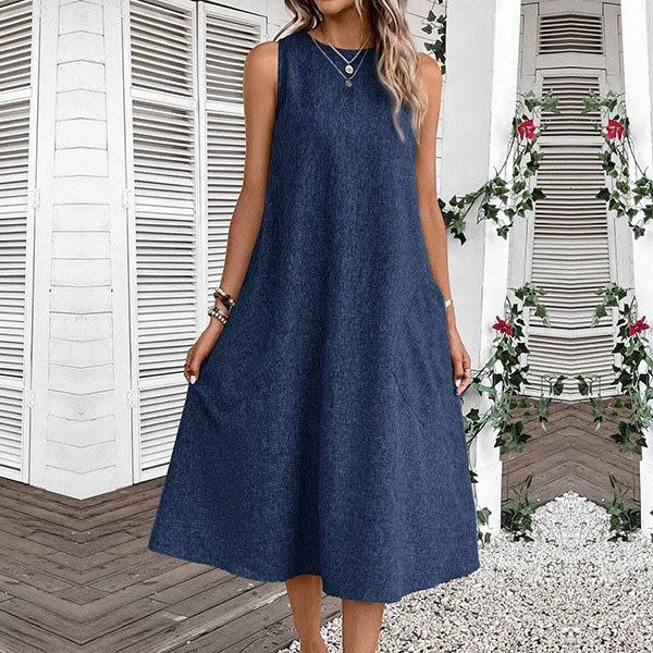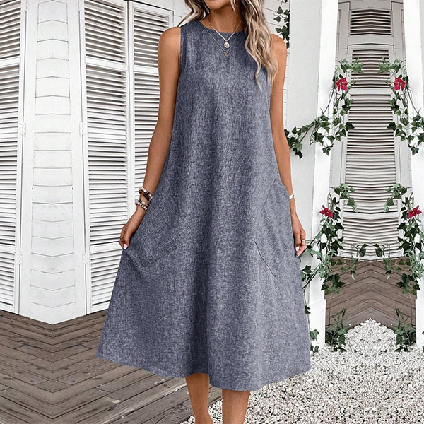 Crafted with comfort in mind, this midi dress is made from soft and breathable fabric that drapes beautifully. It features a relaxed halter neckline, sleeveless design, convenient patch pockets, and a versatile midi length. Whether you're running errands, meeting friends for a casual lunch, or enjoying a weekend getaway, it is a go-to choice.
