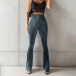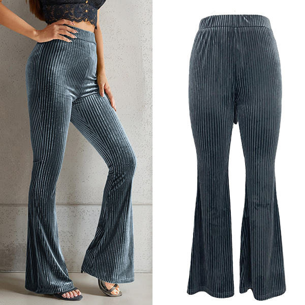Casual Solid Color High-rise Flared Ribbed Pants