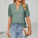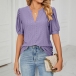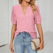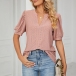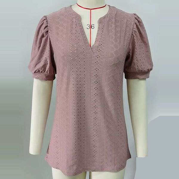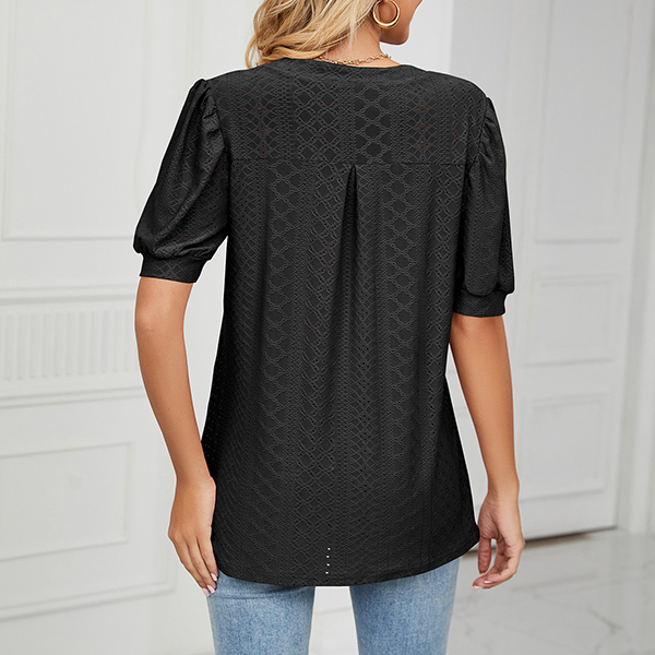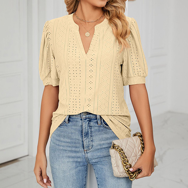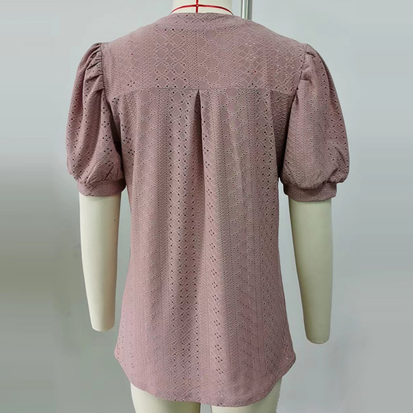 Casual Solid Color Hollow Out V-neck Short Sleeve Shirt