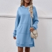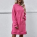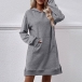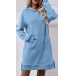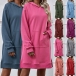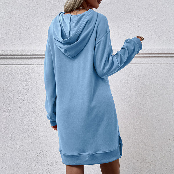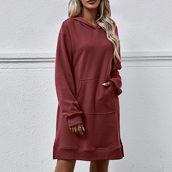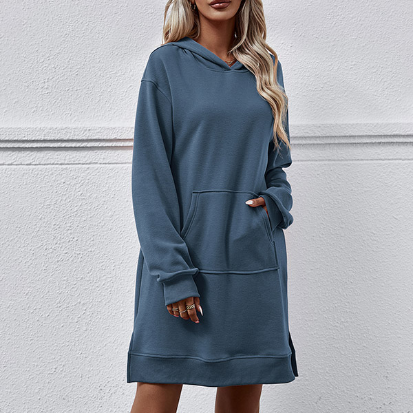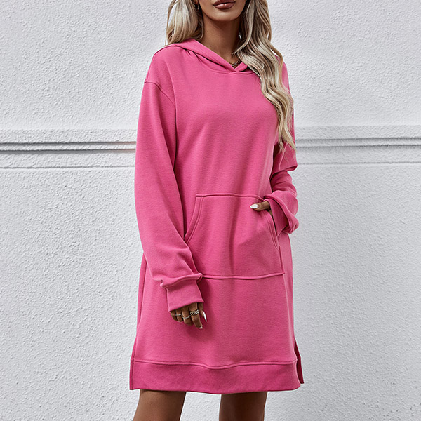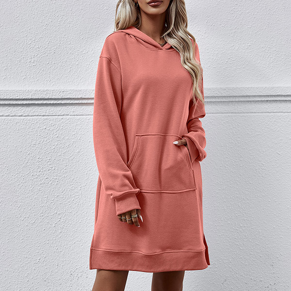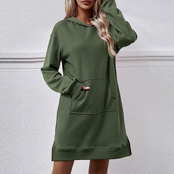 Casual Solid Color Hooded Long Sleeve Kangaroo Pockets Slit Sweatshirt Dress
