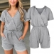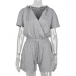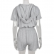 Casual Solid Color Hoodie Drawstring Wrap Romper