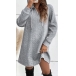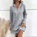 Casual Solid Color Jacquard Long Sleeve V-neck Hooded Drawstring Mini Dress