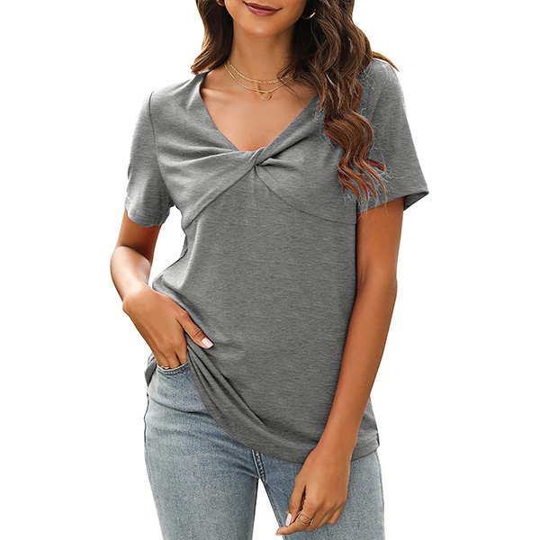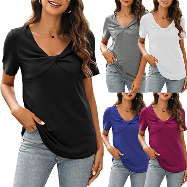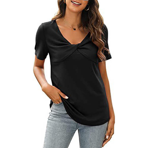 Casual Solid Color Kink-knot V-neck Short Sleeve Shirt