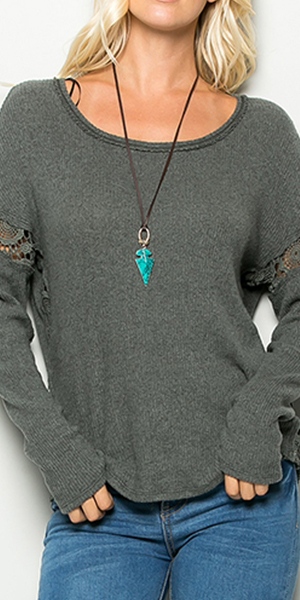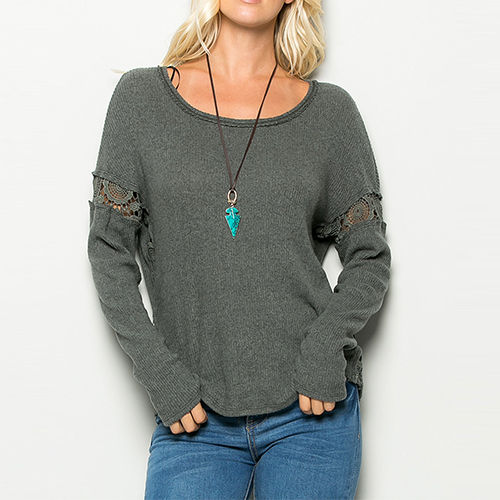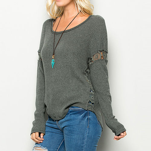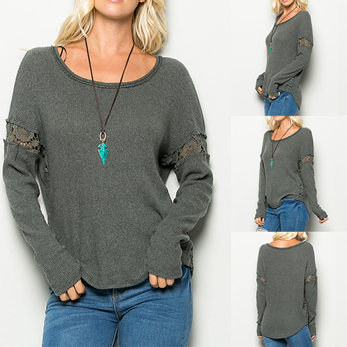 This tops features solid color, bat sleeve, with lace spliced design, soft and cosy material can