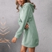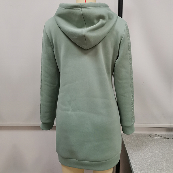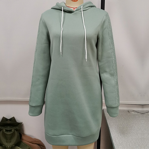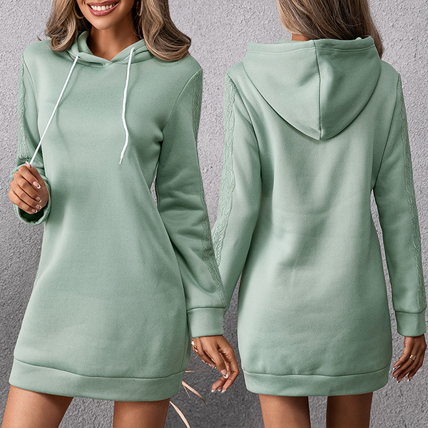 Casual Solid Color Lace Spliced Long Sleeve Drawstring Hooded Sweatshirt Dress