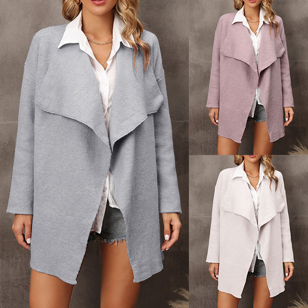 Casual Solid Color Lapel Long Sleeve Cardigan