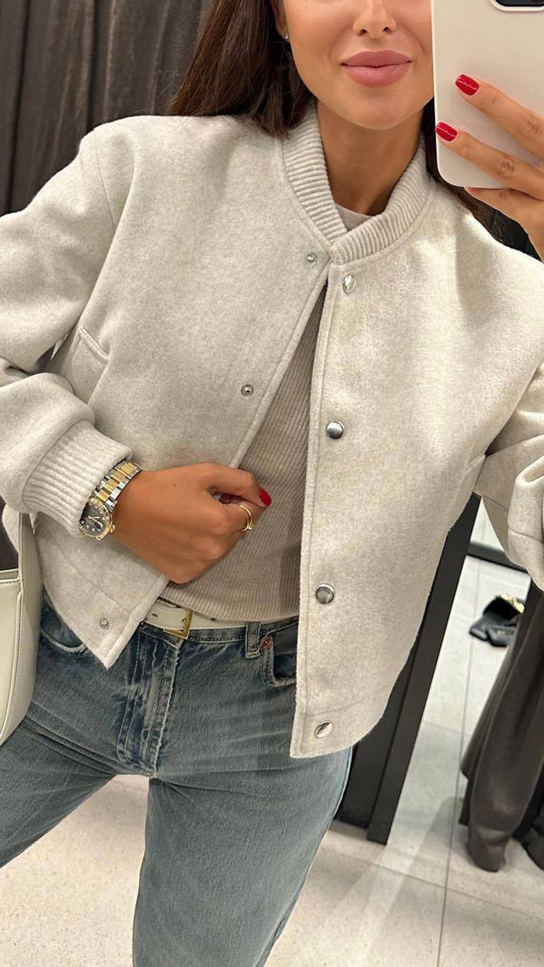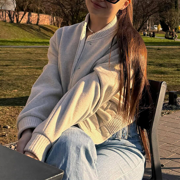 This casual baseball jacket features a solid color design, long sleeves, and a sporty silhouette, creating a laid-back and versatile look. Wanna have one?