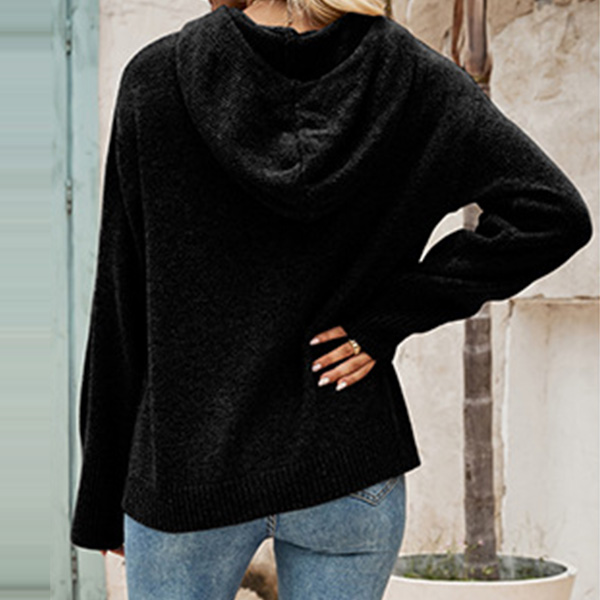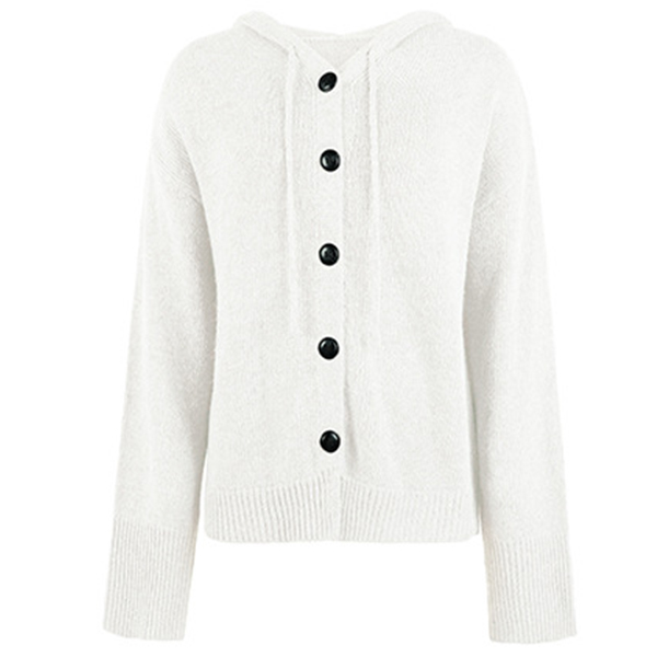 Casual Solid Color Long Sleeve Buttoned Drawstring Hooded Knitted Cardigan