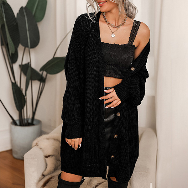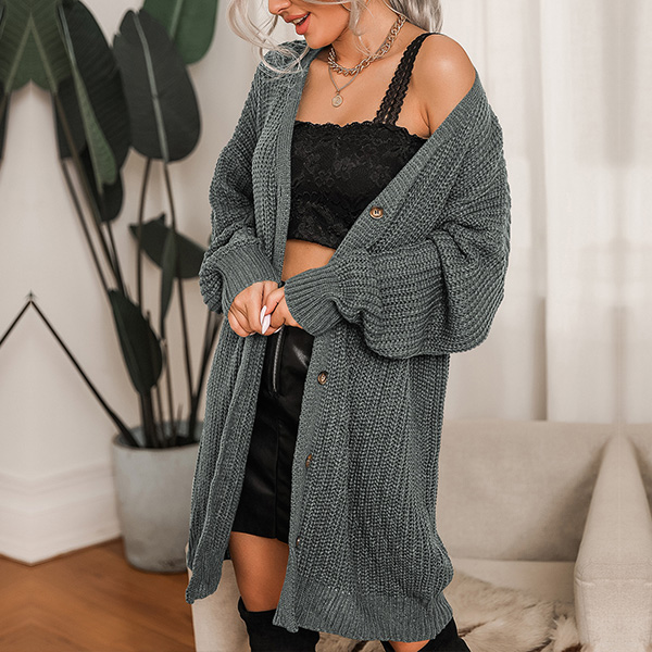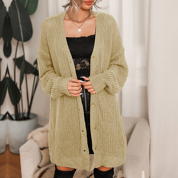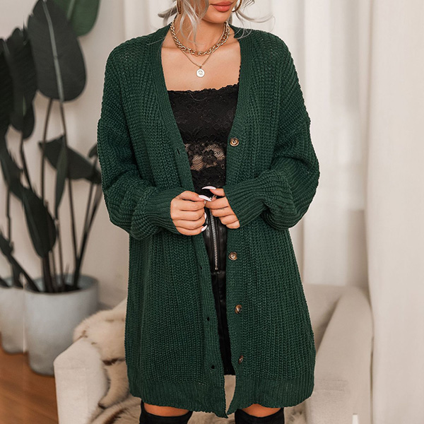 Casual Solid Color Long Sleeve Buttoned Knitted Cardigan