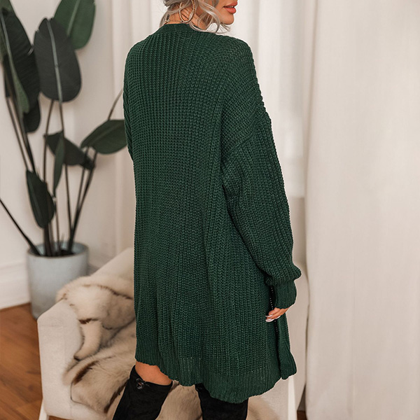 This cardigan features a solid color design, making it easy to style and suitable for various occasions.