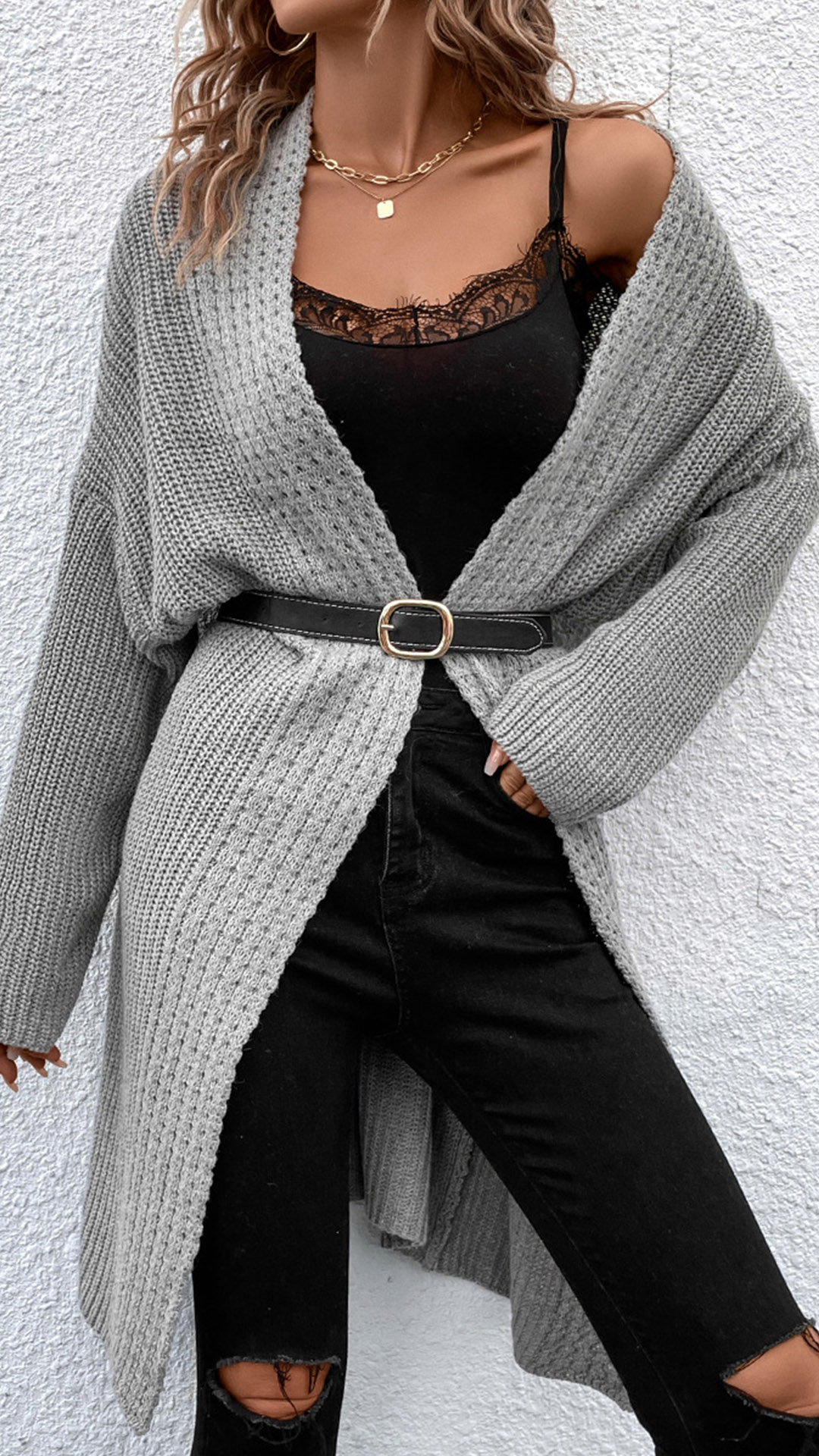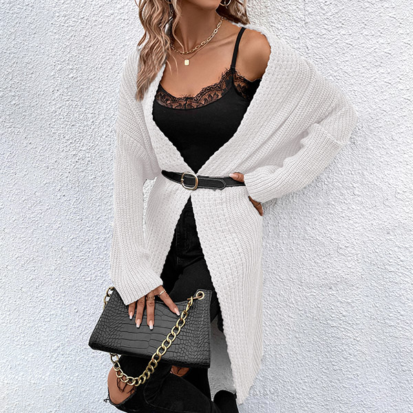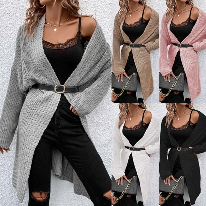 Casual Solid Color Long Sleeve Cardigan without Belt