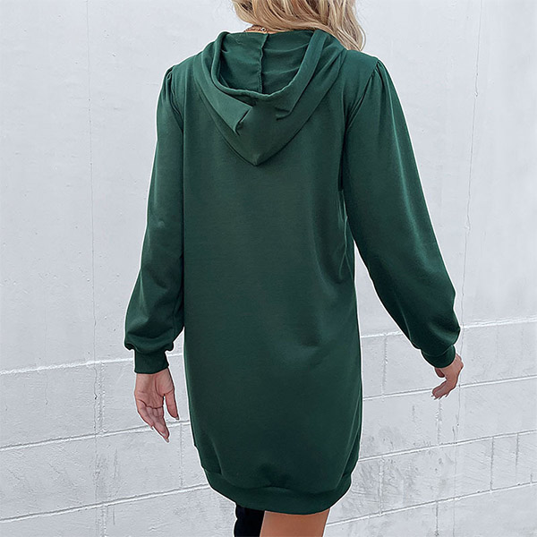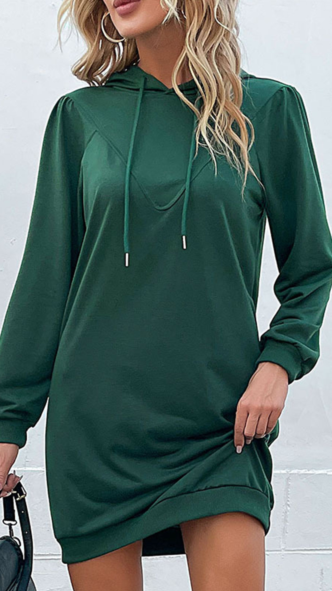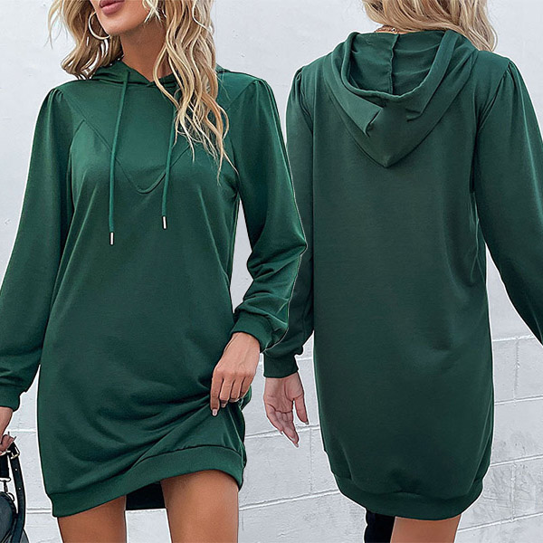 Casual Solid Color Long Sleeve Drawstring Hooded Sweatshirt Dress