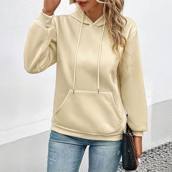 Casual Solid Color Long Sleeve Drawstring Hooded Sweatshirt