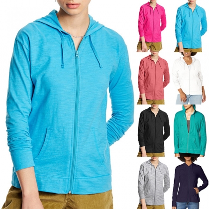 Casual Solid Color Long Sleeve Drawstring Hooded Zipper Sweatshirt