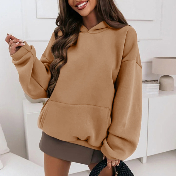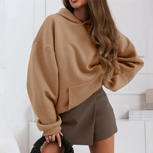 Casual Solid Color Long Sleeve Hooded Sweatshirt