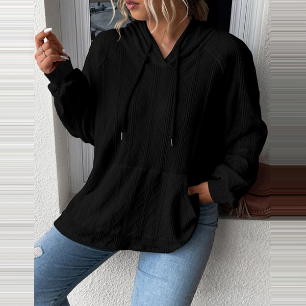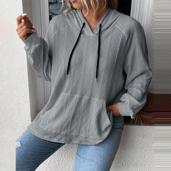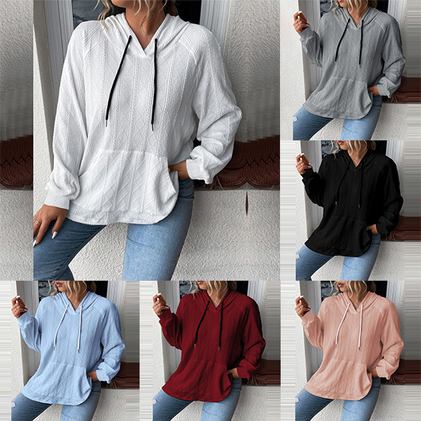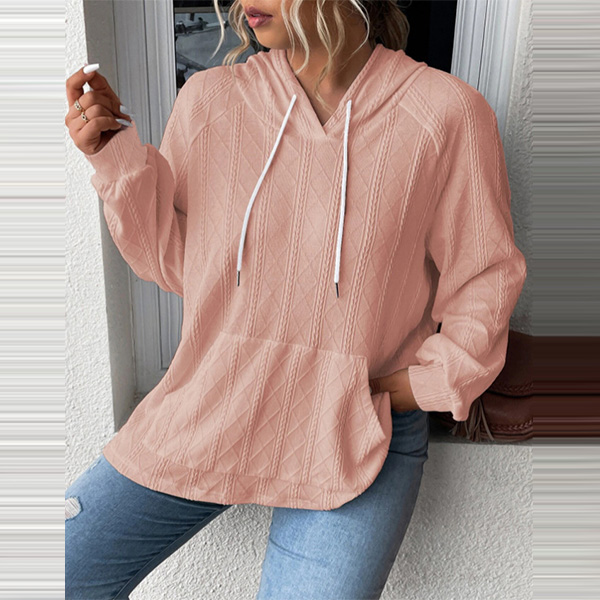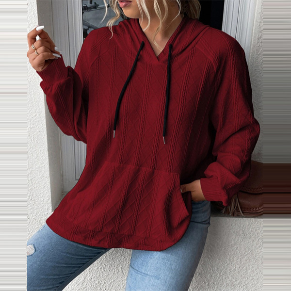 Casual Solid Color Long Sleeve Kangaroo Drawstring Hooded Sweatshirt