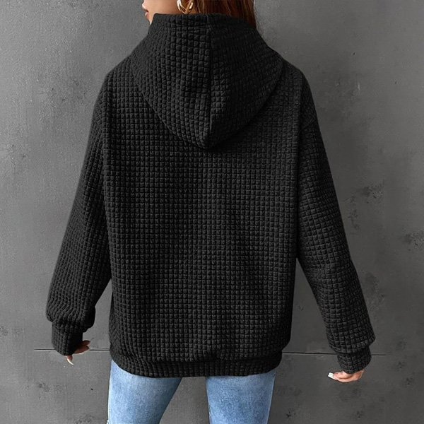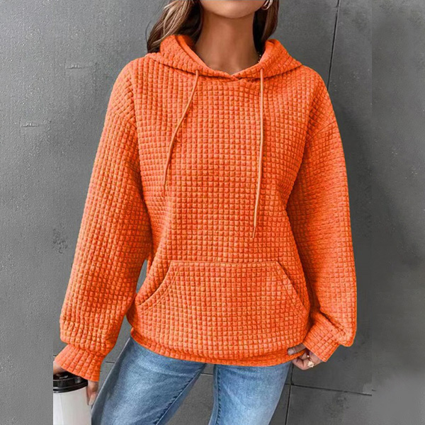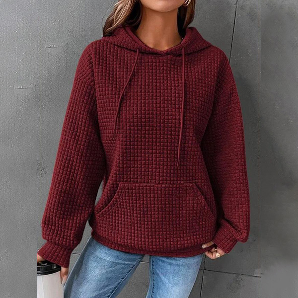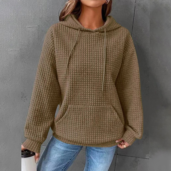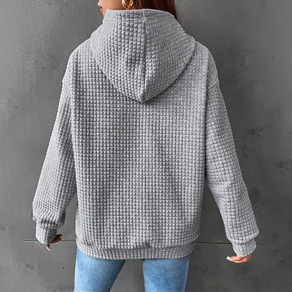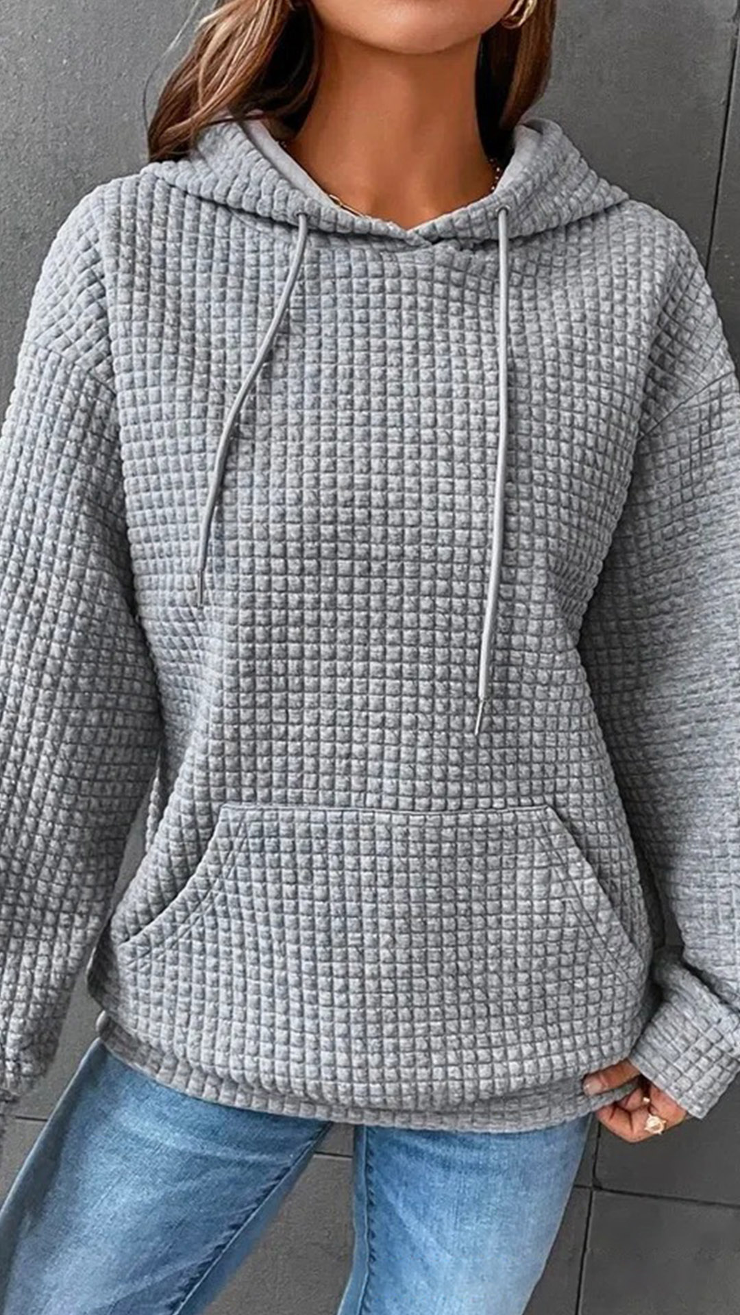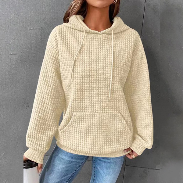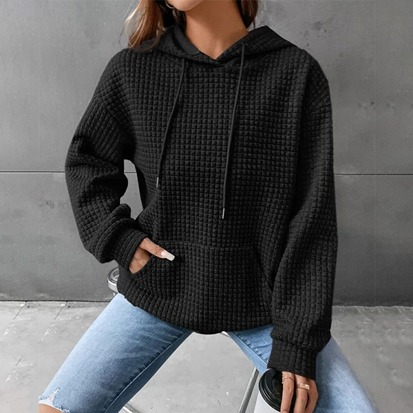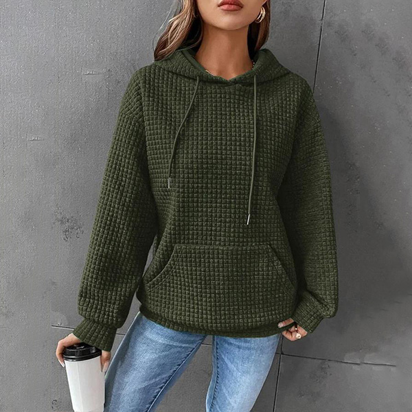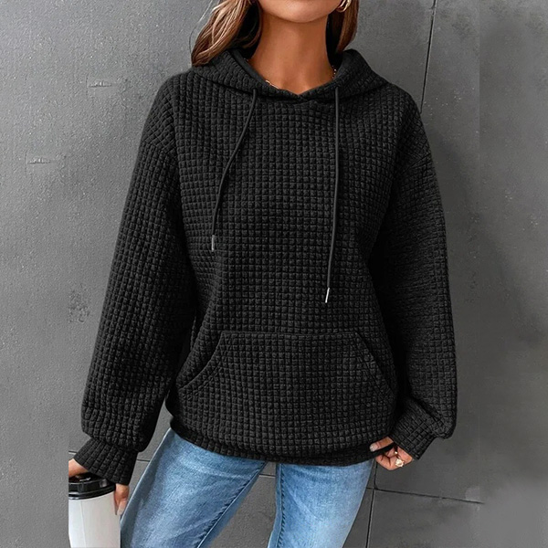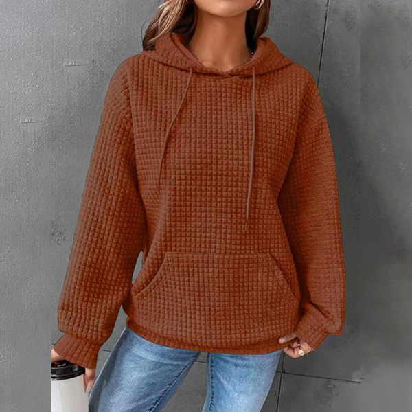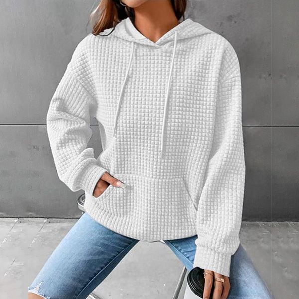 This sweatshirt features a solid color design, offering a timeless and easy-to-style aesthetic. The drawstring hood adds a sporty and adjustable detail, allowing you to customize the fit and coverage. Whether you're running errands, going for a casual outing, or simply lounging at home, this hood is a comfortable and stylish choice.