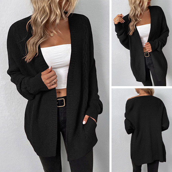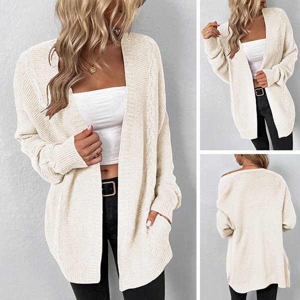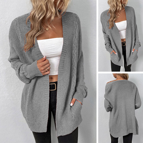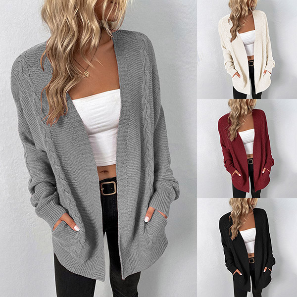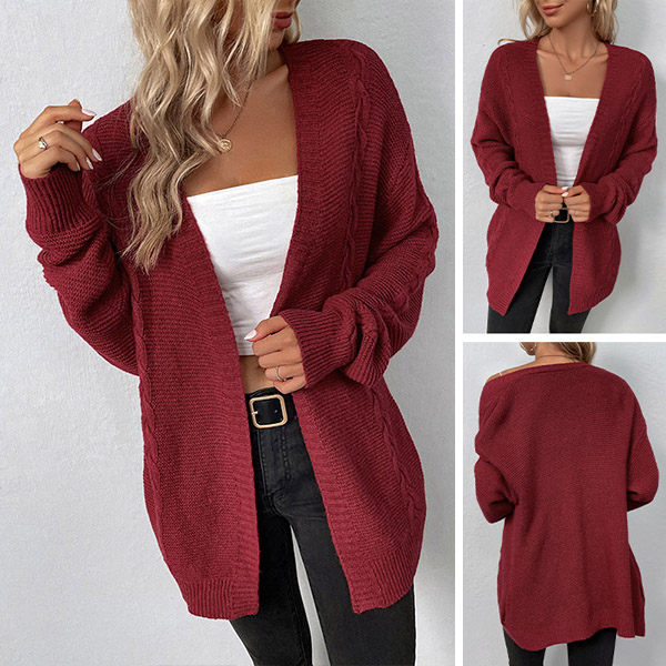 This cardigan features a solid color design and long sleeves, making it perfect for layering over your favorite outfits.