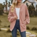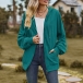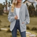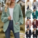 Casual Solid Color Long Sleeve Patch Pockets Drawstring Hooded Cardigan