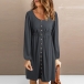 This mini dress is perfect for casual day! It features a round neck, long sleeves, and a solid color. Front button design make it looks chic and stylish. The material is lightweight and comfortable, making it easy to wear all day long.