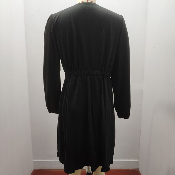 Casual Solid Color Long Sleeve Round Neck Mini Dress