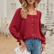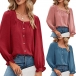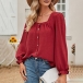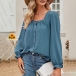Casual Solid Color Long Sleeve U-shape Neck Shirt