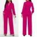 Casual Solid Color Long Sleeve Mock Neck Wide-leg Jumpsuit