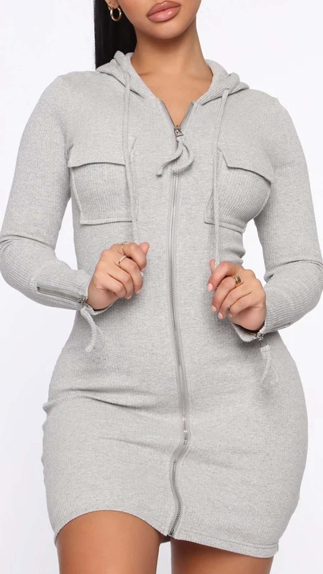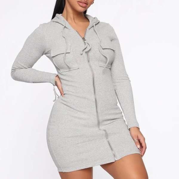 Looking for a casual, yet stylish dress? Look no further than this Hoodied Bodycon Dress! Long sleeve, zipper closure and drawstring hoodied design, this dress is perfect for any casual occasion, whether you're running errands or meeting up with friends.