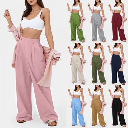 Casual Solid Color Mid-rise Wide-leg Loose Pants