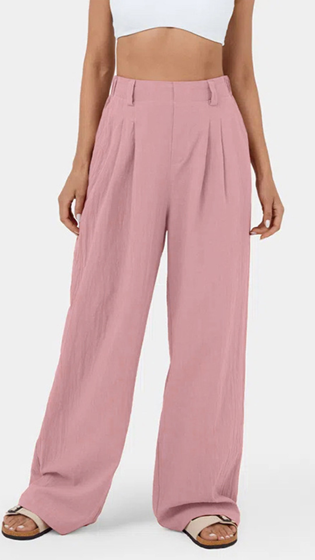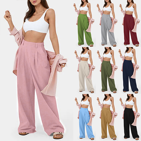 These pants features a solid color design, a mid-rise waist, and a wide-leg silhouette for a casual and relaxed look. The wide-leg silhouette adds a flowy and relaxed vibe to the pants. It allows for ease of movement and provides a comfortable fit throughout the day.