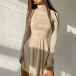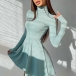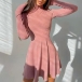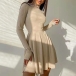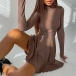 Casual Solid Color Mock Neck Long Sleeve Knitted Mini Dress
