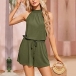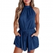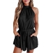 Casual Solid Color Mock Neck Sleeveless Drawstring Romper with Side Pockets