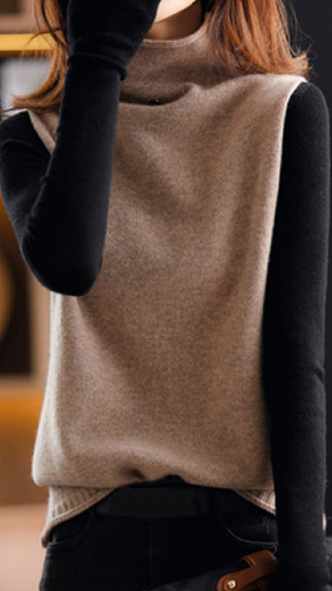 This vest features a mock neck design and sleeveless silhouette that makes it perfect for layering over your favorite shirts and sweaters. The solid color design makes it easy to pair with any outfit, and the knitted fabric gives it a stylish and sophisticated look.