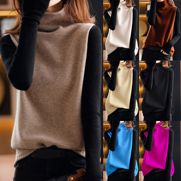 Casual Solid Color Mock Neck Sleeveless Knitted Vest