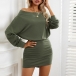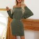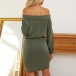 Robe décontractée à manches longues et épaules dénudées, couleur unie