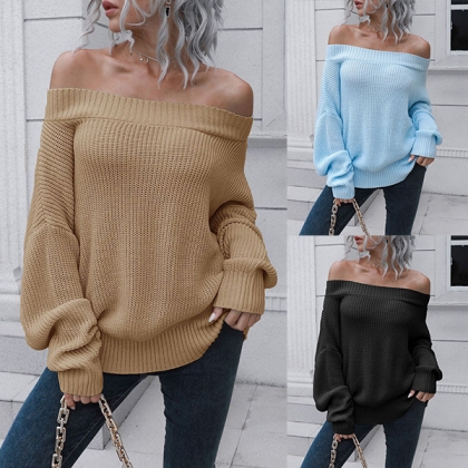Casual Solid Color Off-the-shoulder Long Sleeve Knitted Sweater