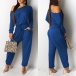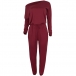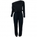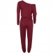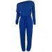Casual Solid Color One-shoulder Long Sleeve Drawstring Jumpsuit