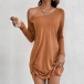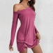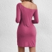 Casual Solid Color One-shoulder Long Sleeve Ruched Mini Dress