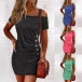 Casual Solid Color Open Neck Short Sleeve Buttoned Mini Dress