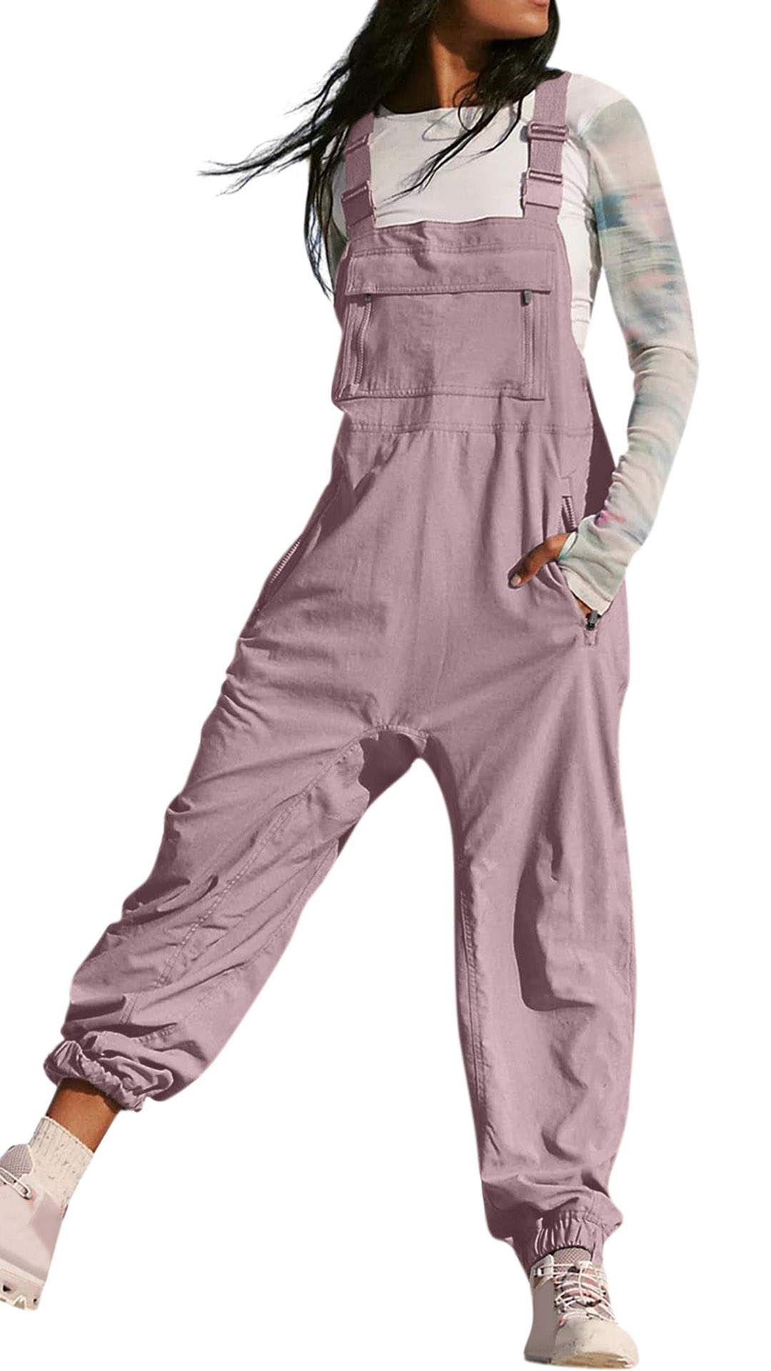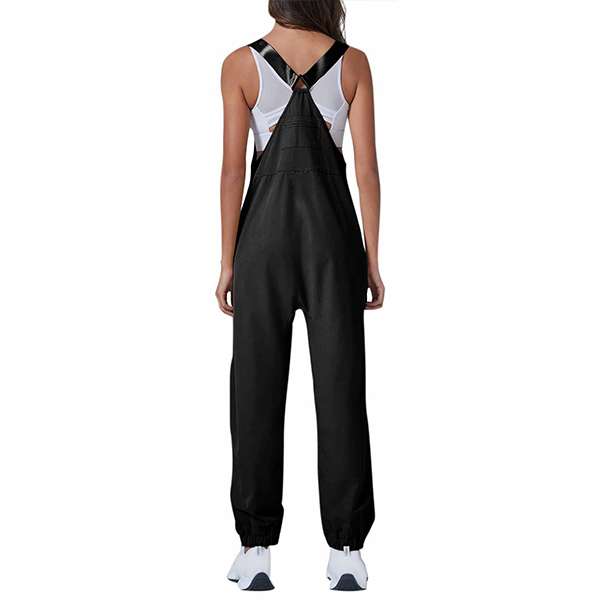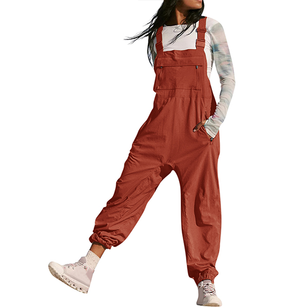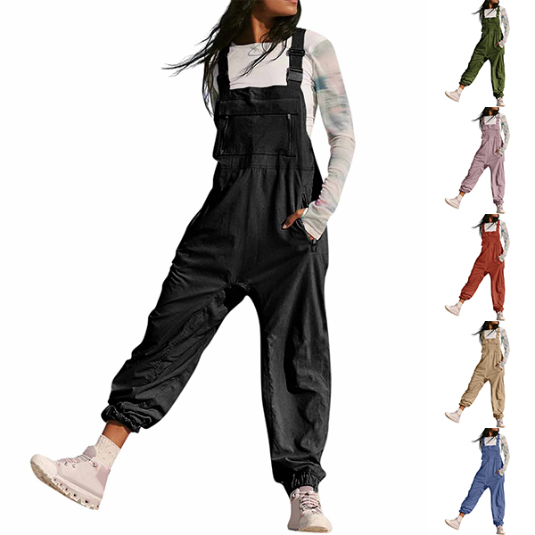 This versatile jumpsuit features a solid color design, patch pockets, adjustable suspenders, and a casual yet fashionable appeal, making it a perfect choice for various occasions.