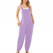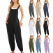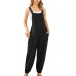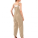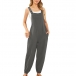 Casual Solid Color Patch Pockets Cotton Linen Suspender Jumpsuit