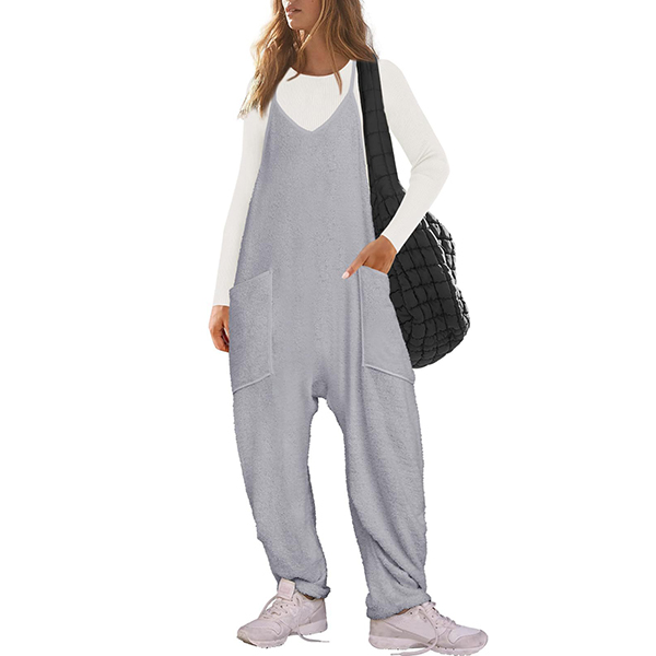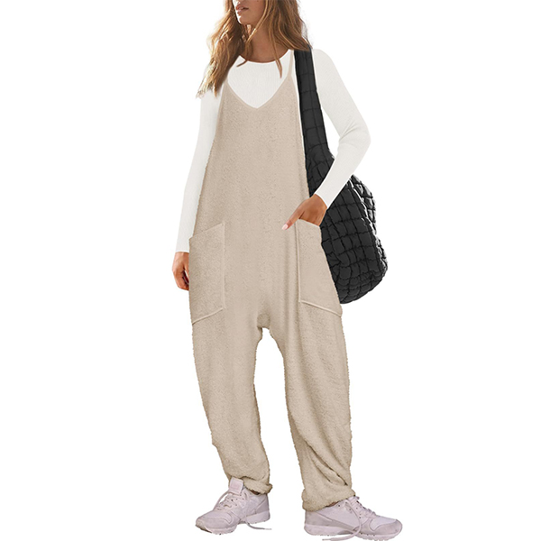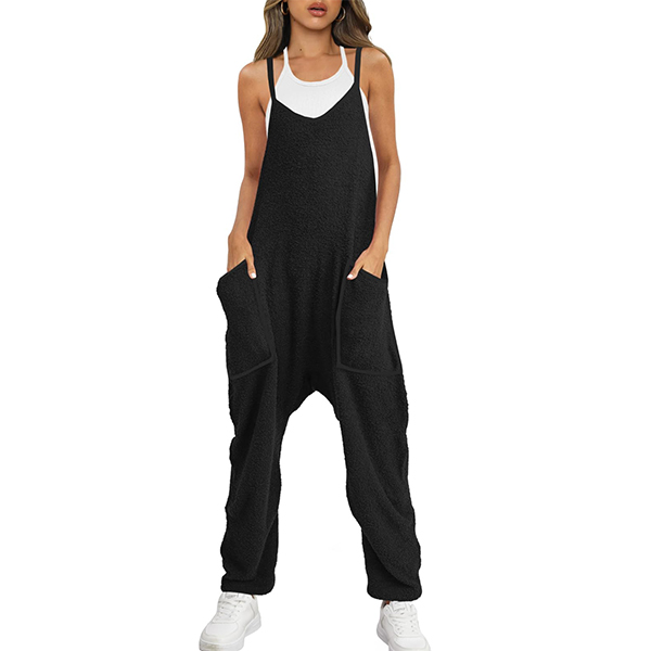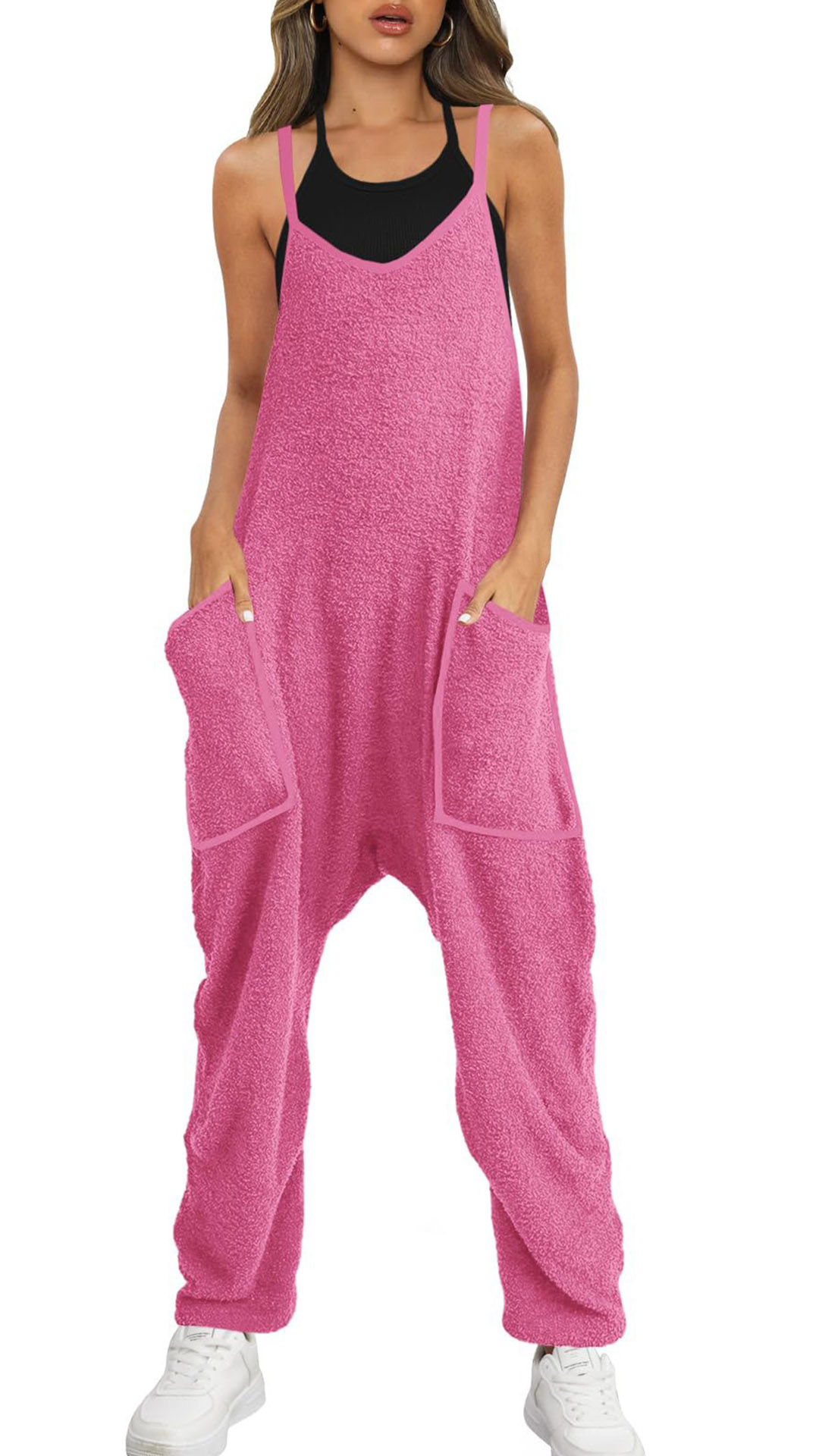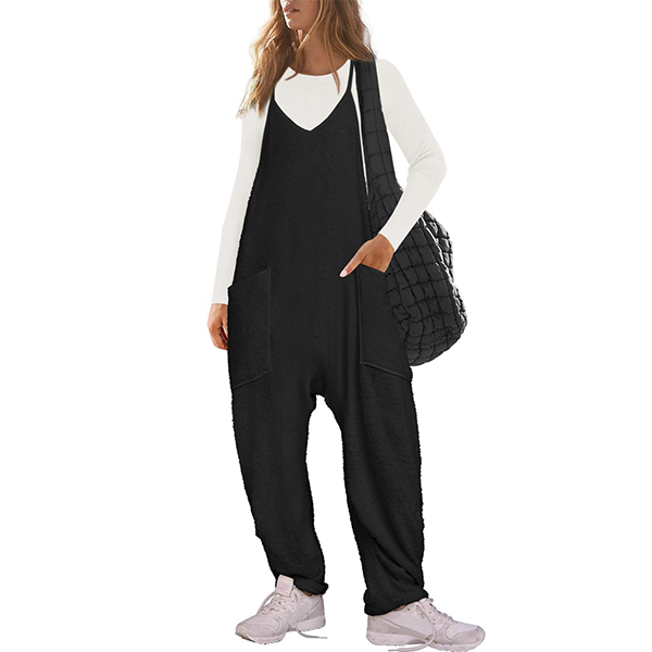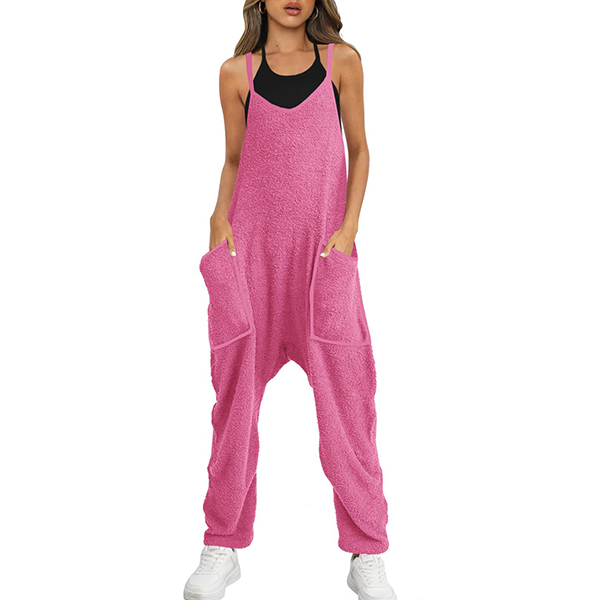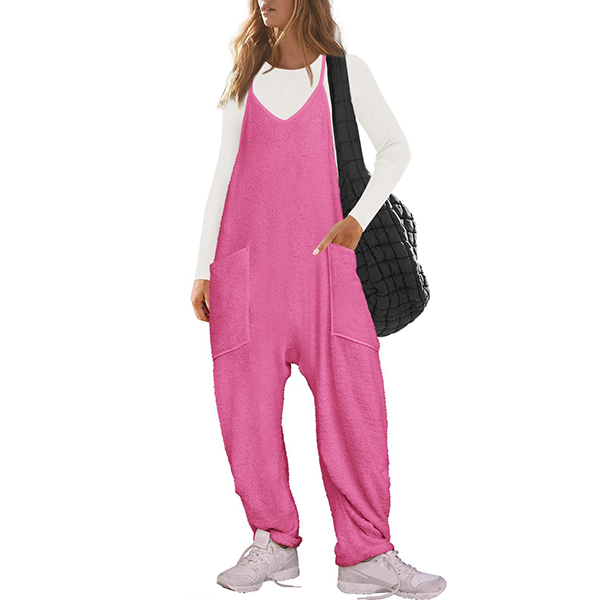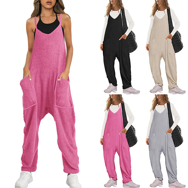 This jumpsuit features a solid color, patch pockets, and a loose fit for a fashionable and casual look. Multi-colors avaible.