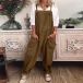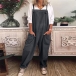 Casual Solid Color Patch Pockets Loose Suspender Jumpsuit