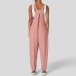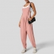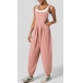 Casual Solid Color Patch Pockets Pleated Loose Jumpsuit