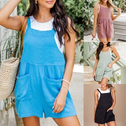 Achieve effortless style with this romper. The solid color design allows for easy pairing with various accessories and shoes. The patch pockets add a touch of functionality and a hint of charm to the romper. Adjustable shoulder straps make a perfect fit! This romper combines comfort and versatility, making it a go-to choice for your casual outings.